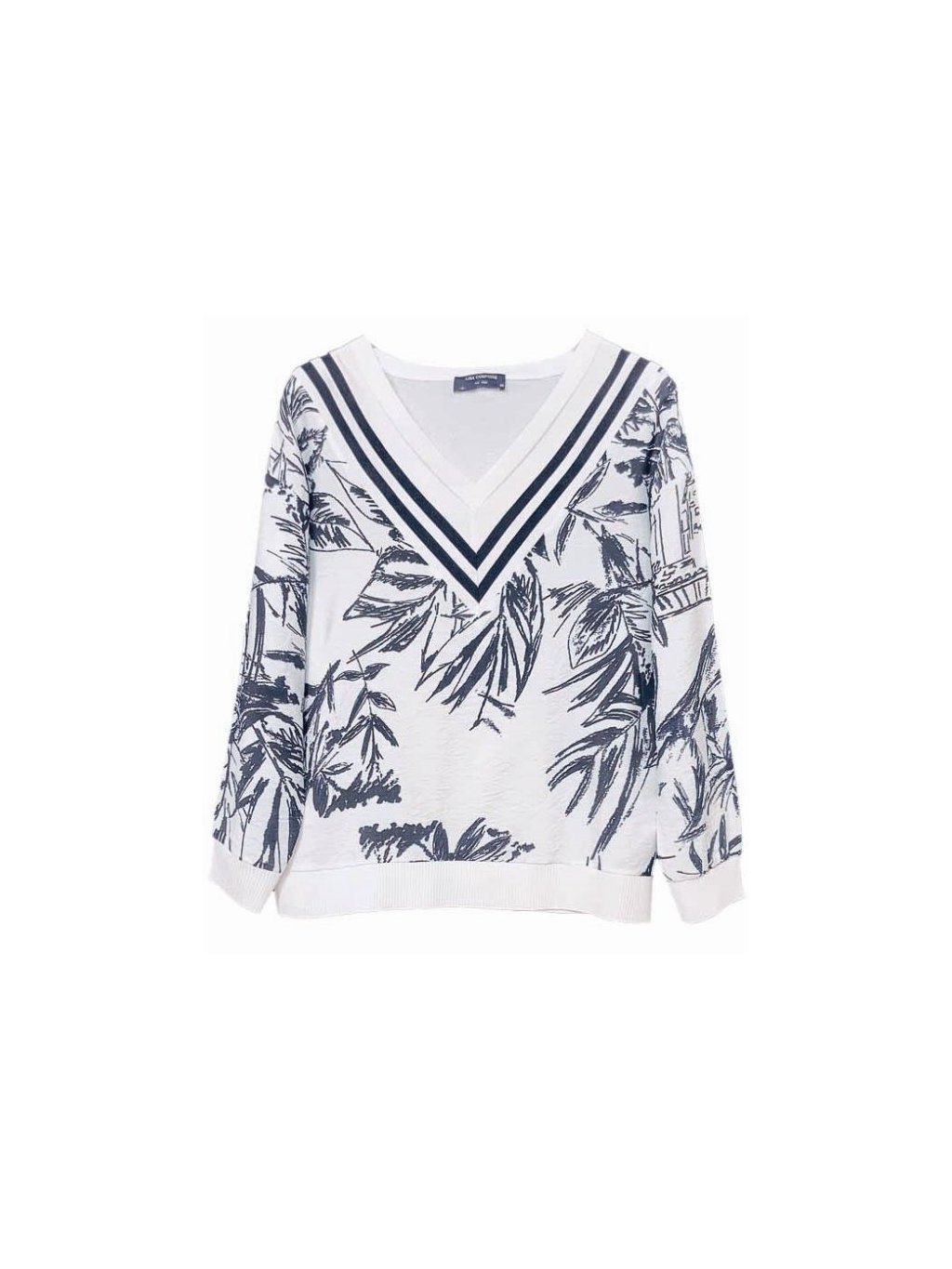 Dámské tričko Lisa Campione s výstřihem do V zaujme elegantním designem a jemným vzorem inspirovaným přírodou. Tričko Lisa Campione je vyrobeno z příjemného a lehkého materiálu, který je pohodlný na nošení a ideální pro jarní i letní dny. Výrazný výstřih do V je doplněn kontrastním lemováním, které dodává modelu moderní a stylový vzhled. Volnější střih s dlouhým rukávem zajišťuje komfort při nošení a snadné kombinování s kalhotami či sukní. Toto tričko Lisa Campione je skvělou volbou pro ženy, které chtějí spojit pohodlí, kvalitu a nadčasovou eleganci v jednom kousku.Doplňkové parametry