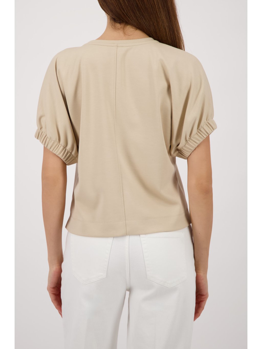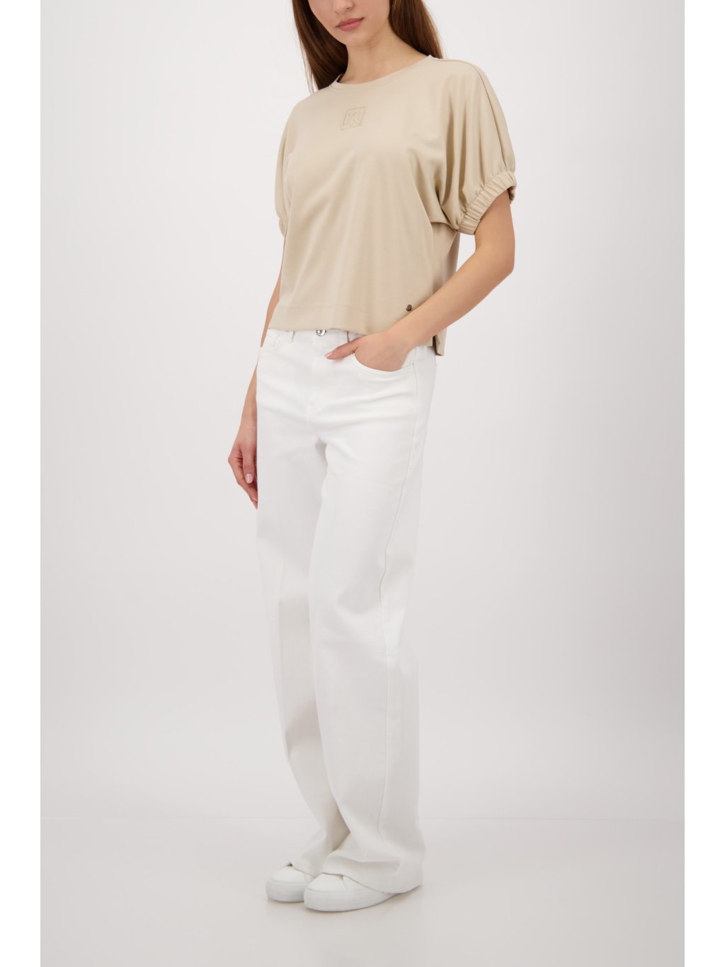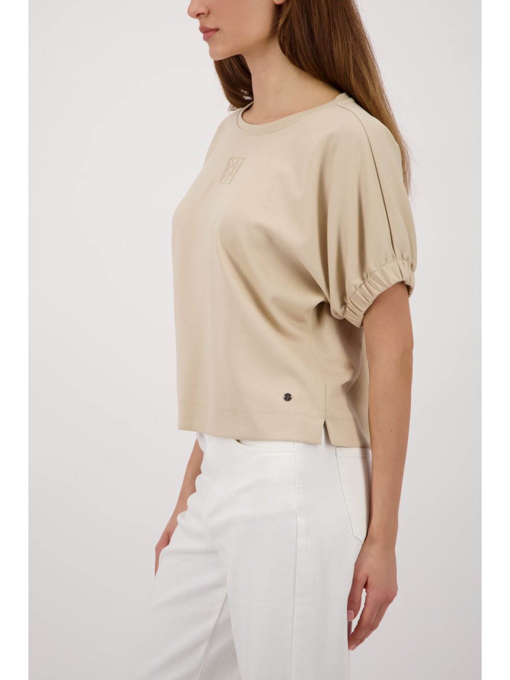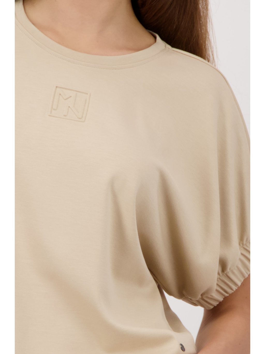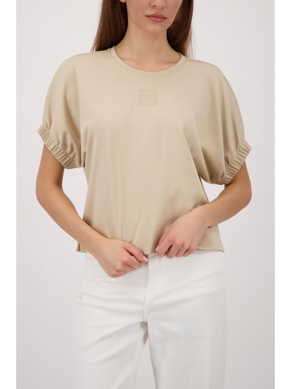 Elegantní dámské tričko v jemném béžovém odstínu. Minimalistický design doplňuje decentní plastické logo na hrudi. Příjemný, hladký materiál zajišťuije komfort při nošení a skveole se hodí jak ke kalhotám, tak k sukni.Doplňkové parametry