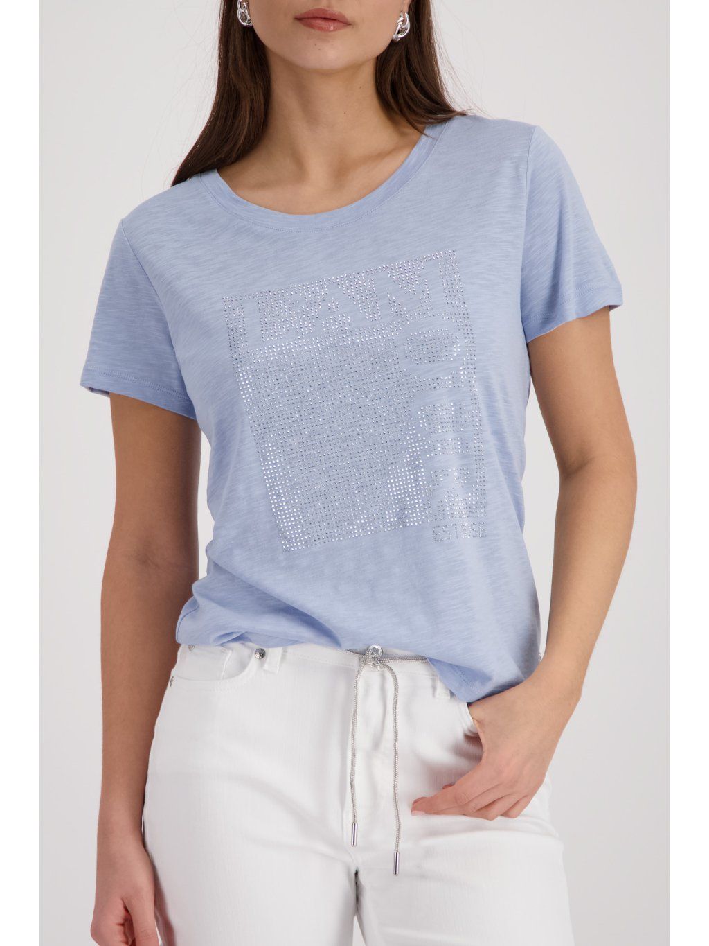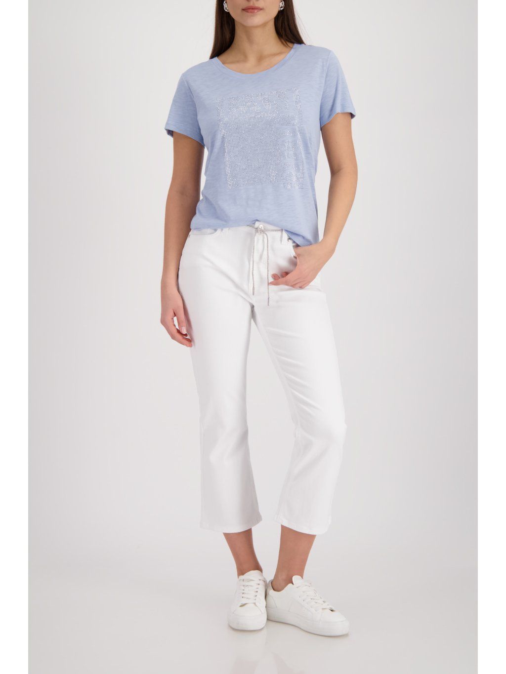 Lehké, svěží a přitom elegantní. Toto tričko od značky Monari v jemném světle modrém odstínu je ideální volbou pro ženy, které chtějí působit upraveně, ale přirozeně. Dominantou je decentní aplikace z drobných kamínků, která dodává tričku jemný třpyt a luxusní nádech. Příjemný materiál a pohodlný střih zajišťují maximální komfort při každodenním nošení. Perfektní kousek, který rozzáří každý outfit. Proč si ho zamiluješ: jemné třpytivé zdobení pro elegantní efekt světlá, svěží barva ideální na jaro a léto příjemný a pohodlný materiál snadno kombinovatelné – od casual po elegantní styl Tip na styling: Skvěle vypadá s bílými kalhotami nebo džínami – vytvoříš čistý, svěží outfit bez námahy.
