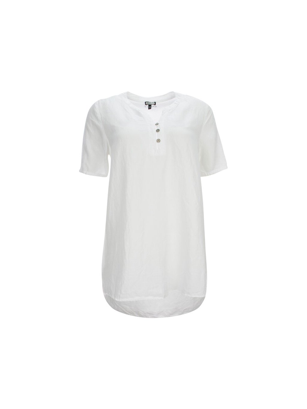 Dámské, elegantní, jednoduché, bílé triko ze směsi lnu. Triko má ležerní, rovný střih a přední část je o něco kratší než zadní část. Díky směsi viskózy a lnu je triko velmi lehké, vzdušné a příjemné na nošení.Doplňkové parametry
