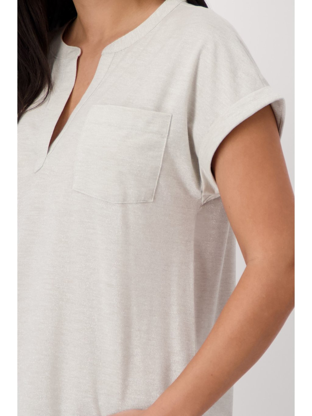 Dámské triko s lurexovým vláknem má stojáček s výstřihem do písmene V. Triko je bez rukávů.Doplňkové parametry