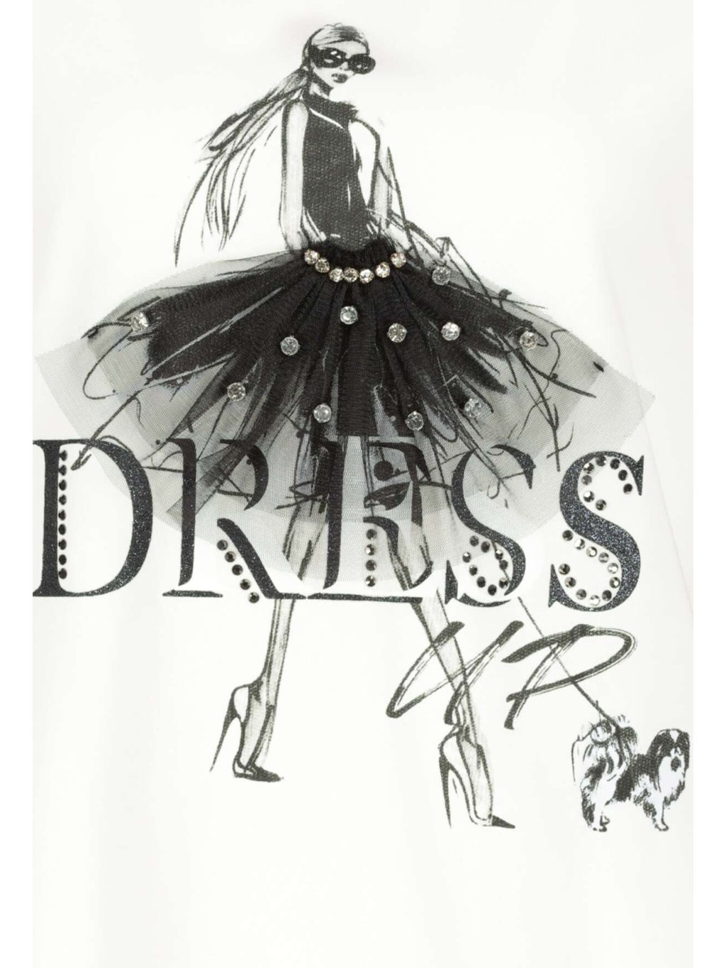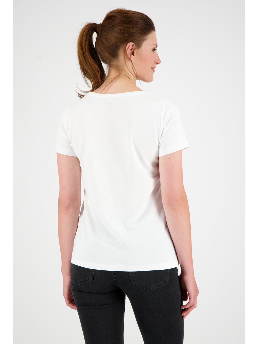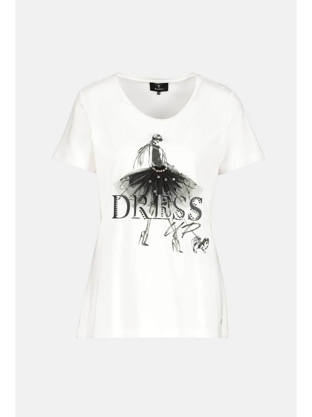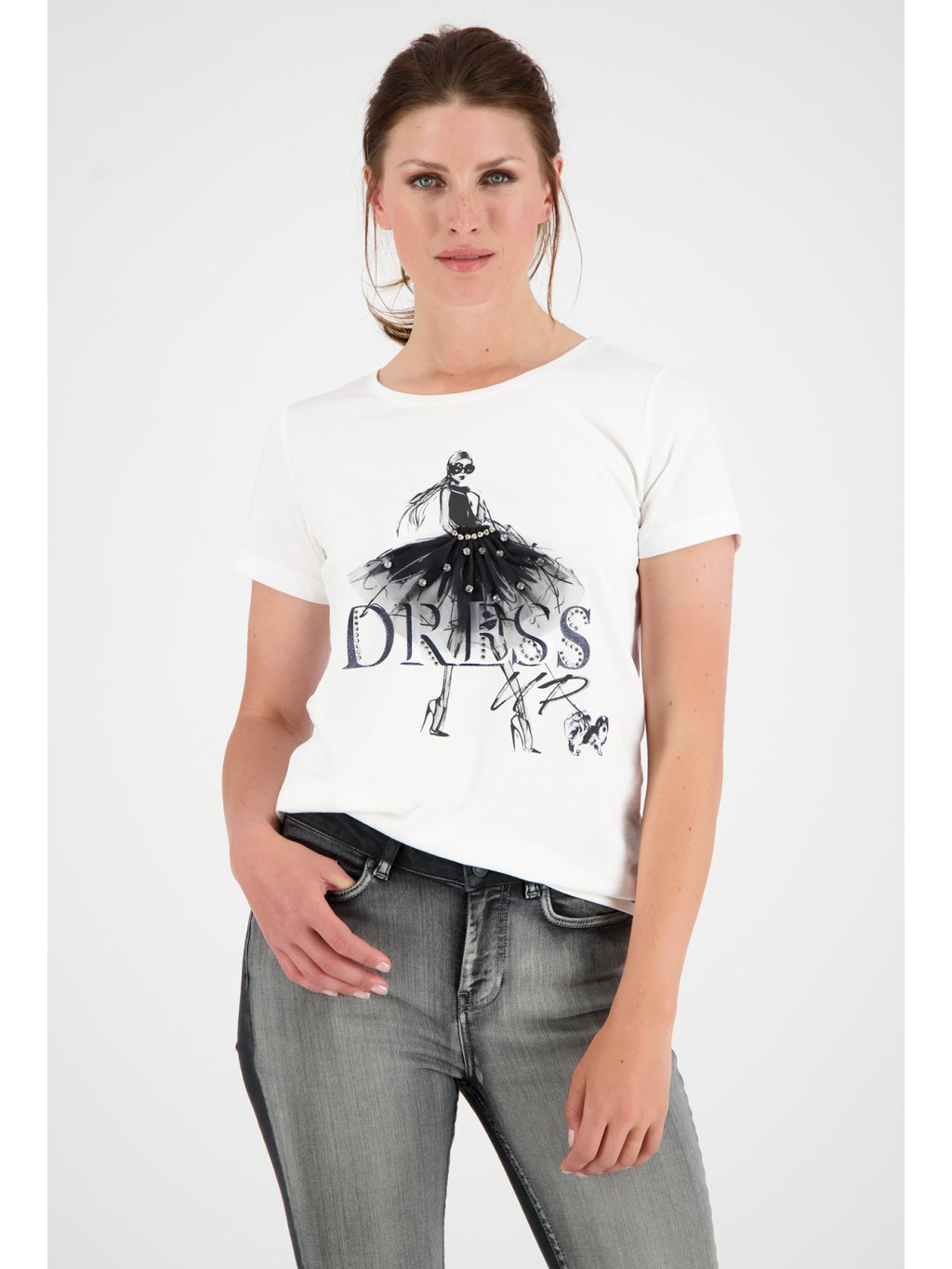 Volnočasové, dámské, bílé triko s krátkým rukávem. Triko je rovného střihu, má kulatý výstřih a je velmi příjemné na nošení. Triko je zdobeno potiskem a drobnými kamínky.Doplňkové parametry