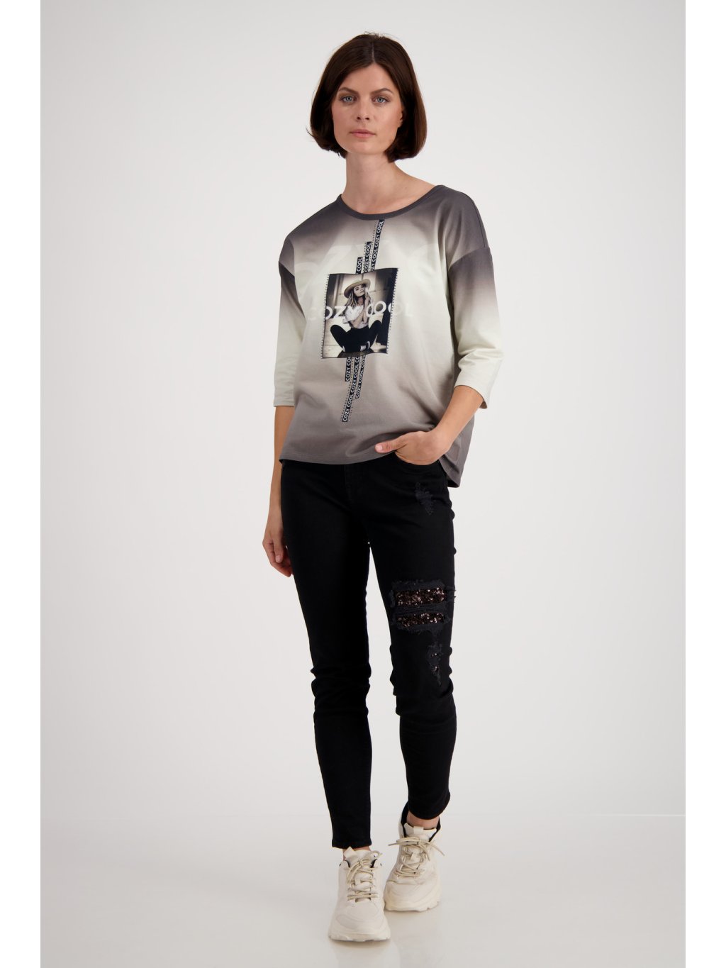 Krásné,elegantní, jednoduché, moderní triko s 3/4 rukávem. Triko je zdobeno potiskem. Krásné pohodlné triko z kvalitního materiálu, které by nemělo chybět ve vašem šatníku.
