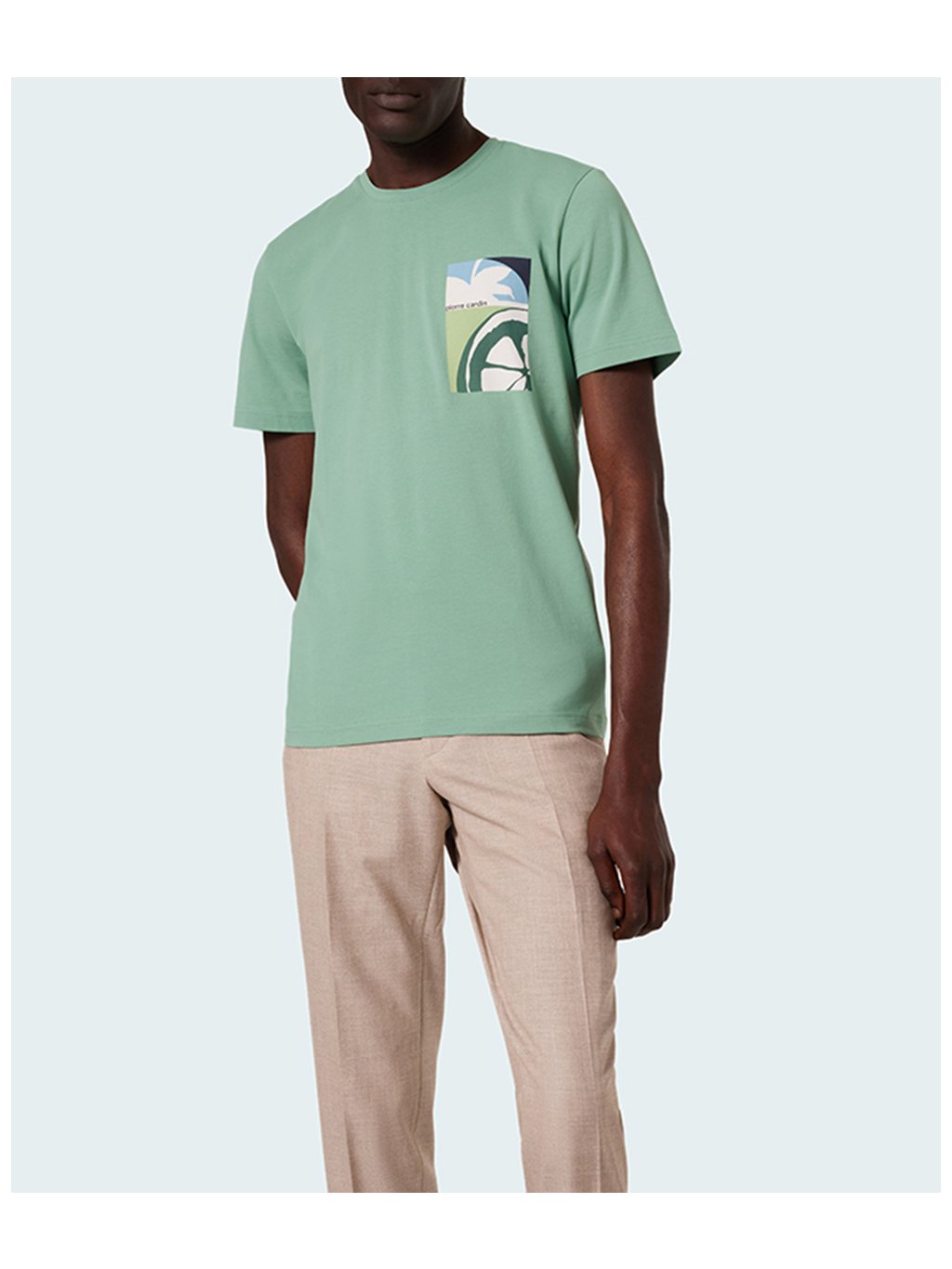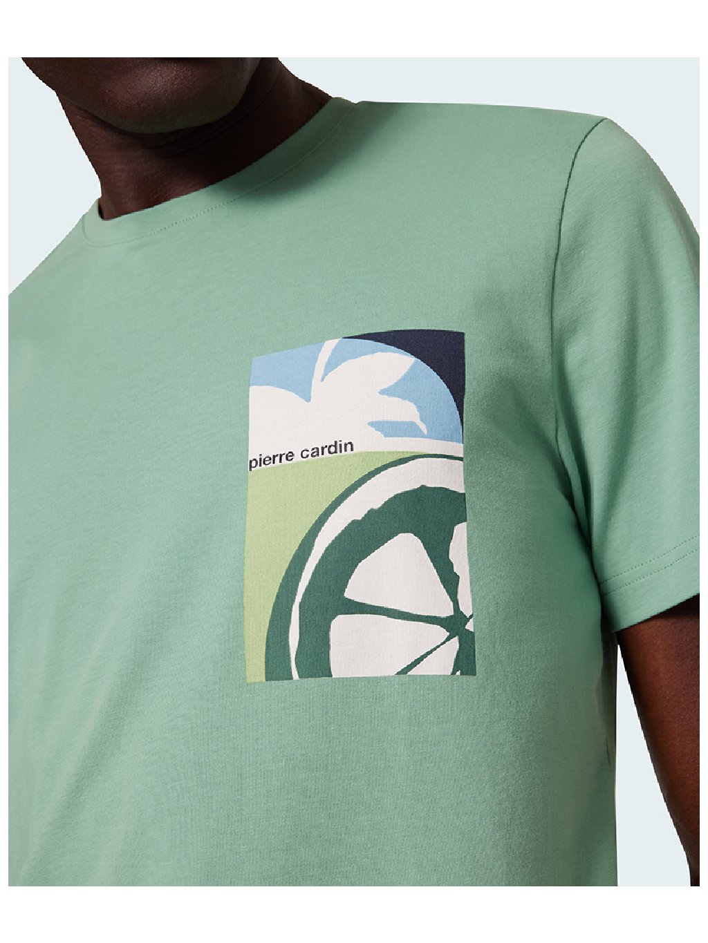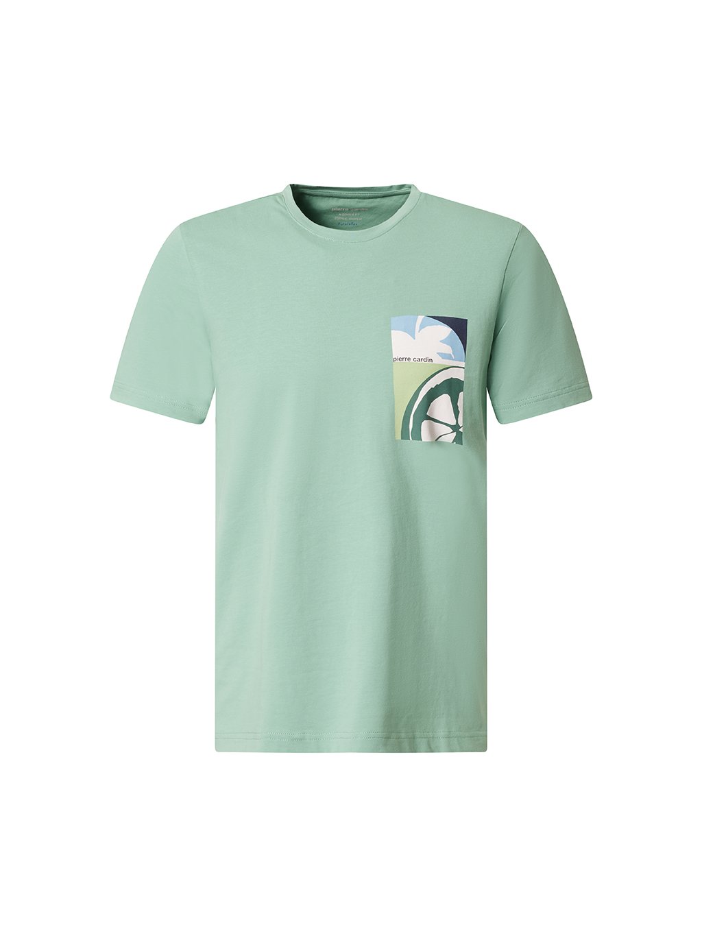 Pánské triko s potiskem na přední straně v místě kapsičky. Triko je s krátkým rukávem a kulatým výstřihem.